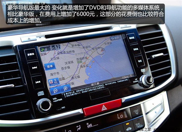 从车型名称基本就可以看出,这款车与2.0EX豪华版的区别在于多媒体系统上。如果坐进车内,你会发现它中控台的变化还是挺大的,从豪华导航版开始,新款雅阁也算是走进了双屏时代。